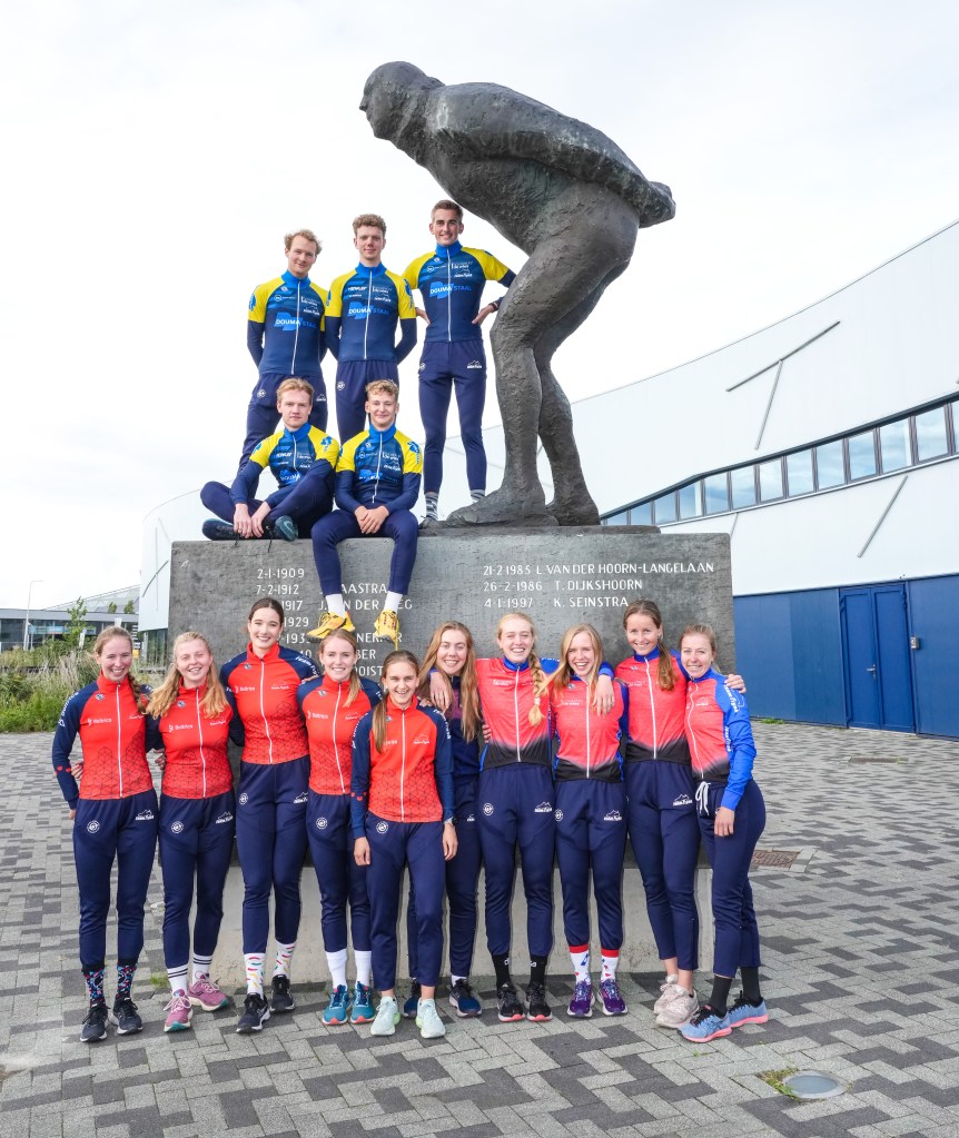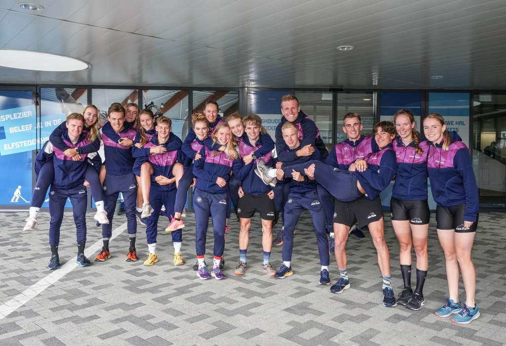 Nu het schaatsseizoen van start is, de eerste wedstrijden verreden zijn en de ijsbanen allemaal weer opengaan, was het afgelopen vrijdag tijd voor de ploegenpresentatie van Team Frysk. Met zowel het topteam als talententeam, was dit een drukke bedoening en het ijs van de Elfstedenhal in Leeuwarden was mooi gevuld met een veertigtal paarse pakken. Na afloop van een korte schaatstraining werden alle teams voorgesteld, inclusief de marathonteams en dus ook Bouwbedrijf de Vries – samen met Esmee Visser, Kim Talsma, Hilde Noppert en Paulien Verhaar is ons doel ons zo goed mogelijk van voren te laten zien in de marathonwedstrijden.